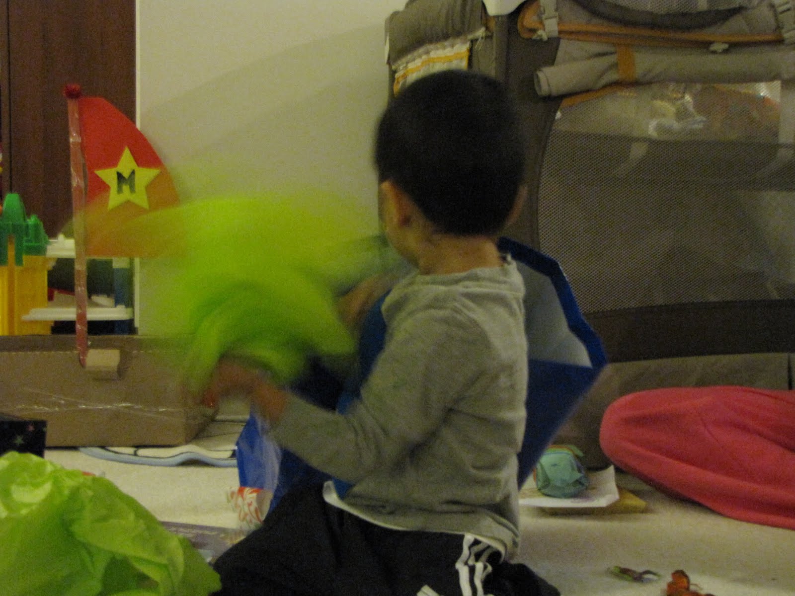 Present time :) Micah was getting into the bags so fast i couldn't keep up.